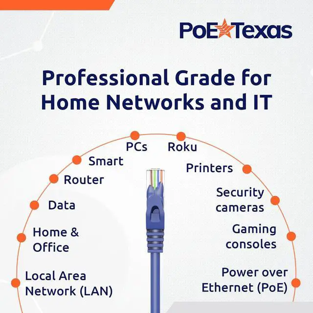Use with PCs, gaming consoles, computer servers, NAS, routers, switch boxes, printers, VoIP phones, PoE devices, security cameras, hi-def video streaming, transferring large data files, cloud computing, video surveillance, and more. ANSI/TIA-568-C. 2 compliant. ETL Verified.