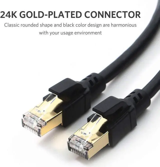 CLASSIC APPEARANCE DESIGN: Category 8 cable has a maximum channel length of 30m (100ft). Rounded shape and black color design is harmonious with your usage environment, easy to install outdoor and indoor.