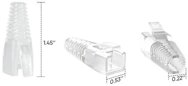 The soft PVC strain relief boots disperse the force and prevent network cable end from rupturing; Insulate dust and oxygen extending the RJ plugs lifetime