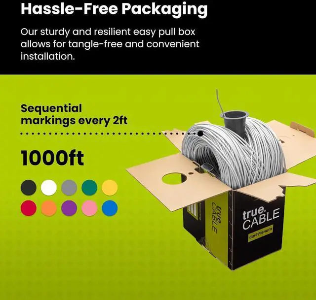 [Easy to use] Comes pre-spooled on a tangle free, easy pull reel so you dont have to worry about getting behind on your next job. Footage markings every 2 feet improve efficiency and easily allow you to track how much cable is left.