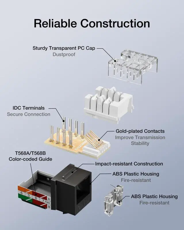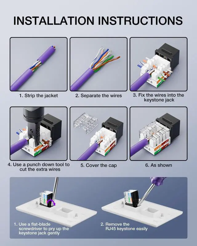 PACKAGE AND SERVICE: Includes 25 RJ45 keystone jacks with an 18-month after-sale service. Designed for hassle-free use, our jacks support T568A and T568B wiring and require minimal maintenancejust wire them in, and theyre ready to go