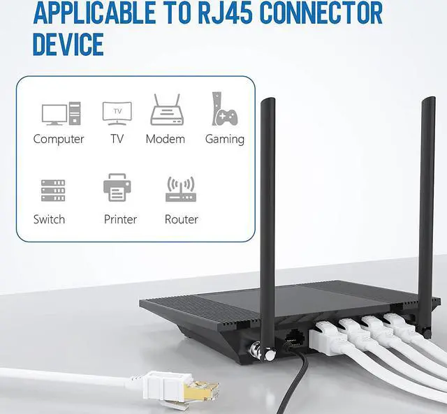 RJ45 Connectors&Wide CompatibilityAdopting the RJ45 connector, 40gb ethernet cable works perfectly Adapters, Modem, WiFi extender, PC, Switch, Patch panel, Servers, Coupler, Hubs, Smart TV, Networking Printers, POE, laptop, IP Cam.