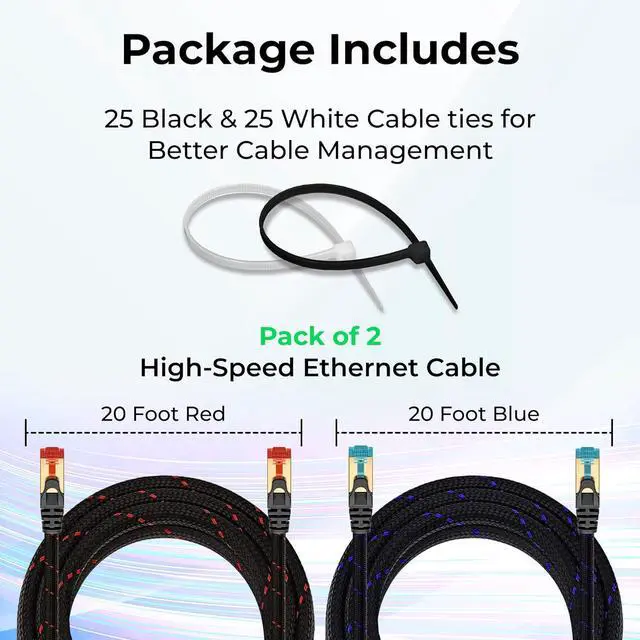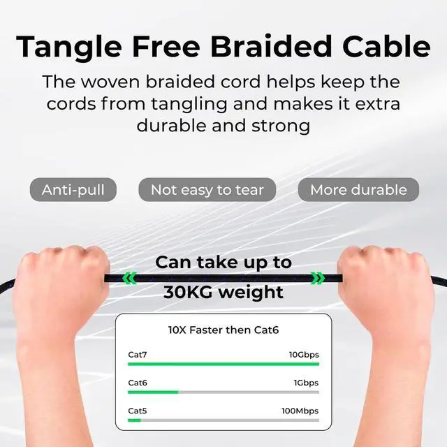 This cat7 ethernet cable 20 ft features a tangle-free fabric braided cable that adds a customized decorative touch and helps prevent the cords from tangling, thanks to the woven braided pattern
