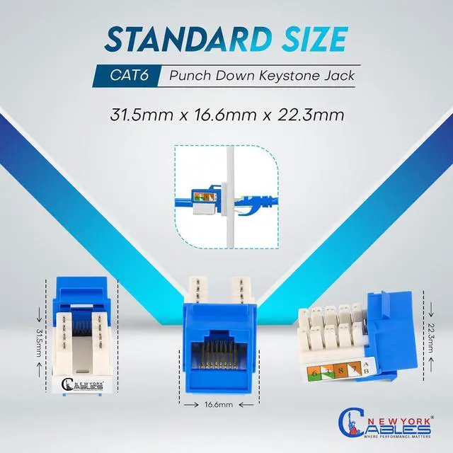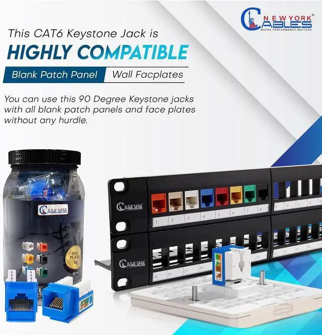 Wide Compatibility: This ethernet keystone jack is compatible with Cat5e, Cat6a, and Cat6 Ethernet cables. It seamlessly integrates with modular patch panels and keystone wall plates.
