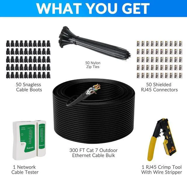 Super Heavy Duty and Sturdy: Adoreen Cat 7 Outdoor Internet Cables feature DOUBLE JACKETS. The Second UV Resistant LLDPE jacket is superior to regular PVC to survive for many years. It is waterproofed & anti-corrosion and protects against UV rays, extreme temperatures and harsh weather conditions, which makes the cable super heavy duty, sturdy and durable.