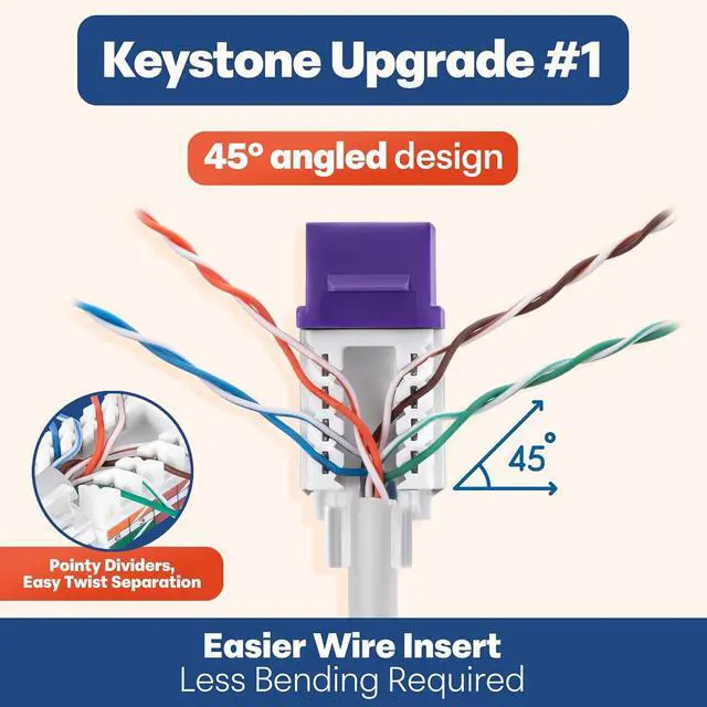 Everest 45° Angled RJ45 Cat6 Keystone Jacks 50-Pack in Purple - Slim Profile Female RJ45 Connectors - Cat 6 Keystone Jack - Compatible with 45° Angled Speed Termination Tool - 45Term (B0BL3GS7ZY)