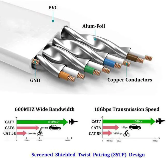 Backwards compatible with CAT5, CAT5e, CAT6 and CAT6a equipment; Perfect for Laptop, Router, Modem, Switch, Hub, DSL and network attached storage devices, PS2, PS3, PS4 and game boxes with RJ45 ports.