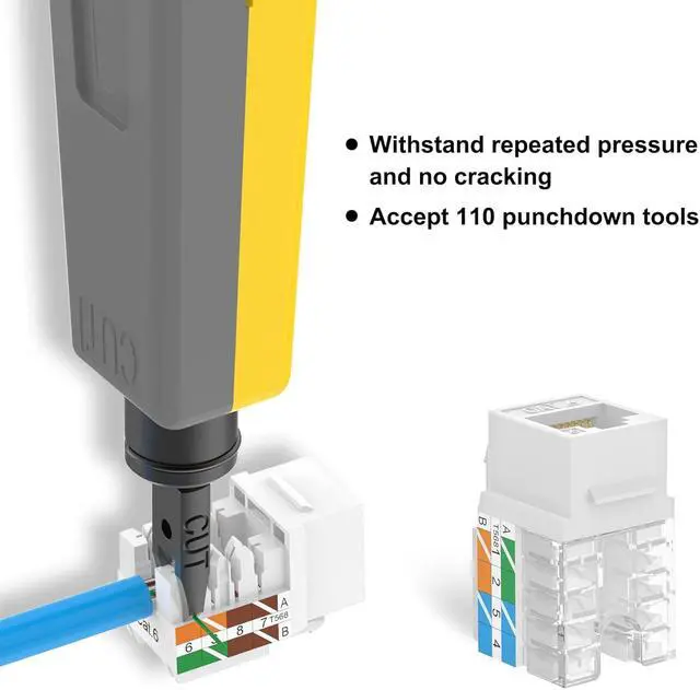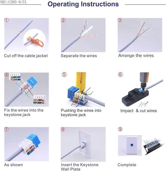 Package Content: 50 x Cat6 punchdown keystone jack UL Listed (E521847) + 1 x wire stripper cutter, worry-free 18-month warranty, and friendly customer service.