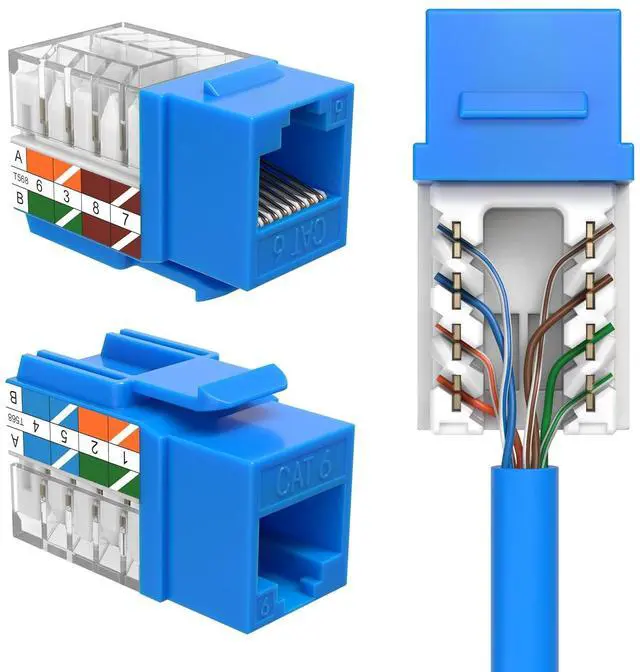 SATMAXIMUM 20 Pack Cat6 Keystone Ethernet Wall Jacks RJ45 Punch Down Slim Profile UTP Blue, 45 Degree for Patch Panel & Wall Plate, Supports Up to 10Gbps