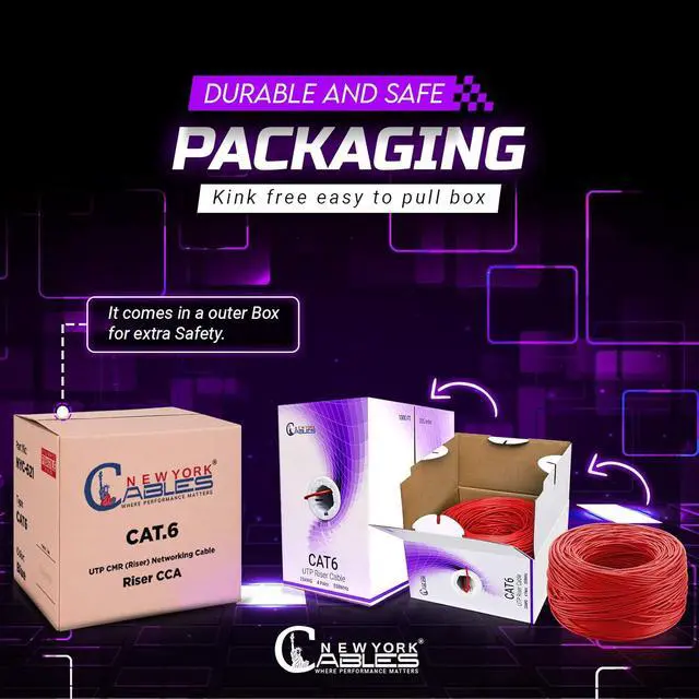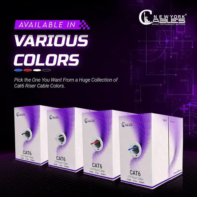 : NewYork Cables is a leading manufacturer of Cat6 riser Ethernet cables, delivering tested and dependable solutions. This Cat 6 1000ft bulk Ethernet cable ensures stable connections for all networking needs. From IT professionals to everyday users, our Cat 6 cable 1000 ft is the preferred Ethernet bulk option for performance and value.