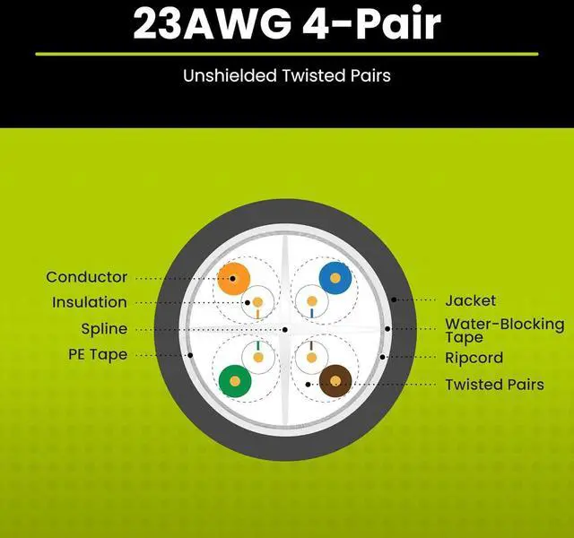 [Versatile] Outdoor-rated CMX jacket is UV, moisture, and weather resistant for direct burial, conduit, or aerial use. Ideal for underground, outdoor, or harsh environment installations.