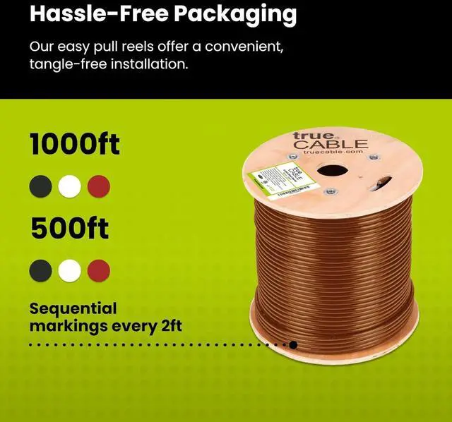 [Easy To Use] Comes on a tangle-free, easy-pull reel with sequential footage markings every 2 feet for quick installation and precise measuring. No more cable waste or messy tangles!