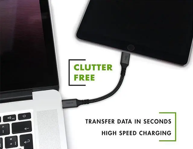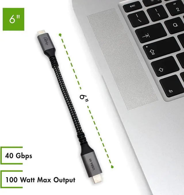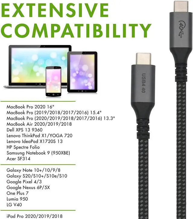 FASTER - USB-4 cable with 40Gbps speed and USB 3.0 compatibility. Supports data transfer 2x faster than standard USB-C cables and up to 100W (20V, 5A) charging.
