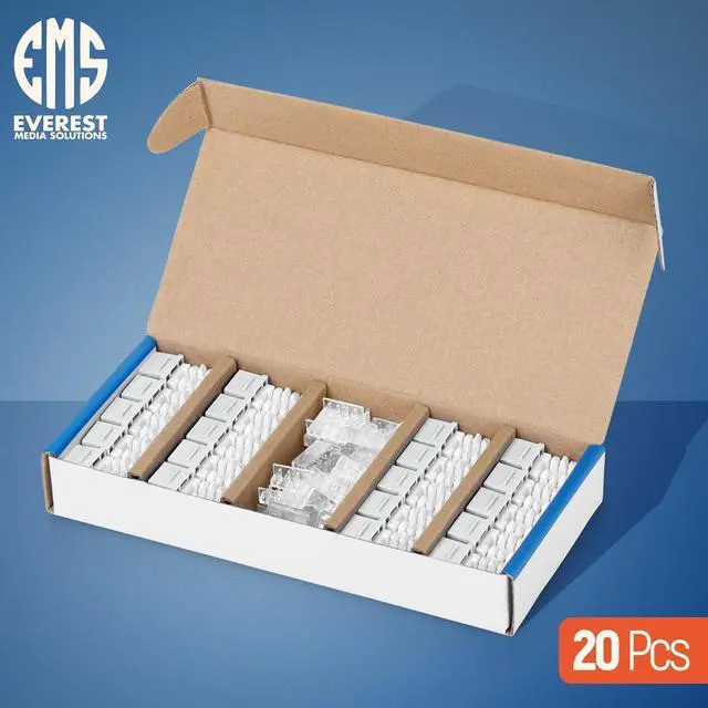 Everest 90° Angled RJ45 Cat6 Keystone Jacks 20-Pack in White - Slim Profile Female RJ45 Connectors - Cat 6 Keystone Jack - Compatible with 90° Angled Speed Termination Tool - easyJACK (B094WB91H3)