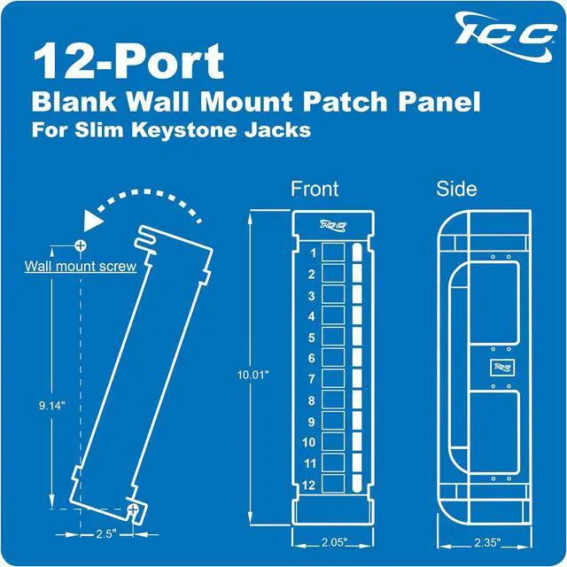 BRACKET: Designed to mount on walls, vertically or horizontally, this patch panel measures 10 H x 3.30 W (including mounting tabs) x 2.80 D and includes an 89U bracket for enhanced cable management. The bracket offers deeper depth for better cable routing and organization in tight spaces. Mounting wood screws are not included.