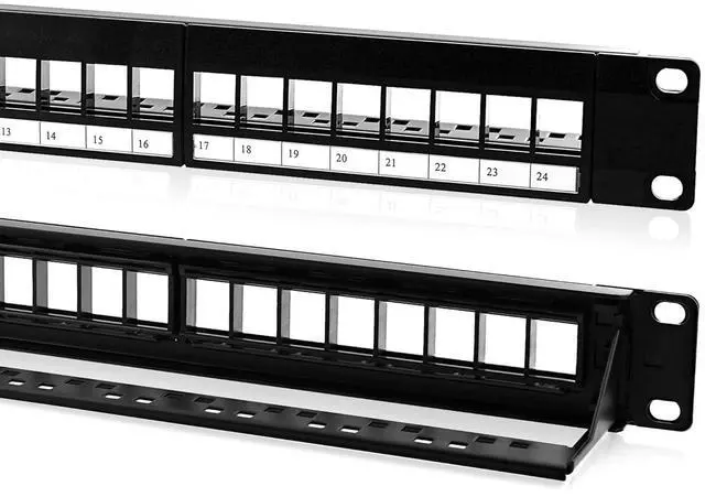 : Take control of your networks cable chaos with our innovative 24 port patch panel. This patch panel 24 port is designed for structured cabling using RJ45 keystones and others like HDMI or USB. Whether used as a 24 port Cat6 patch panel or 24 port keystone patch panel, it streamlines connections while maintaining clean cable flow.