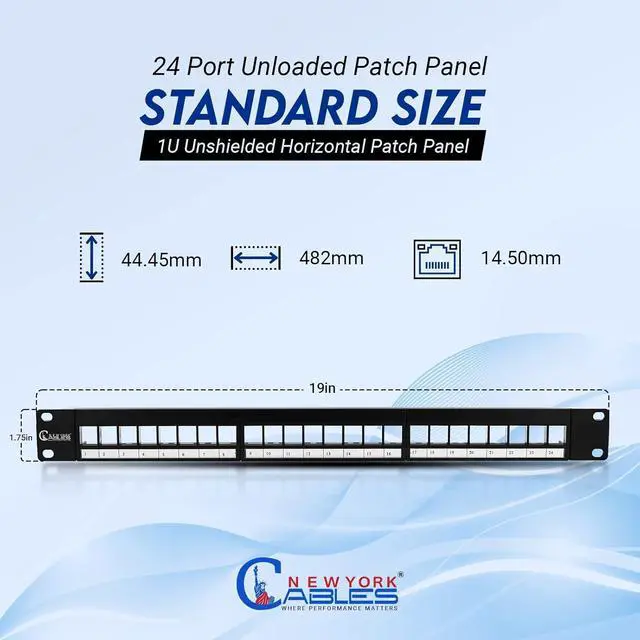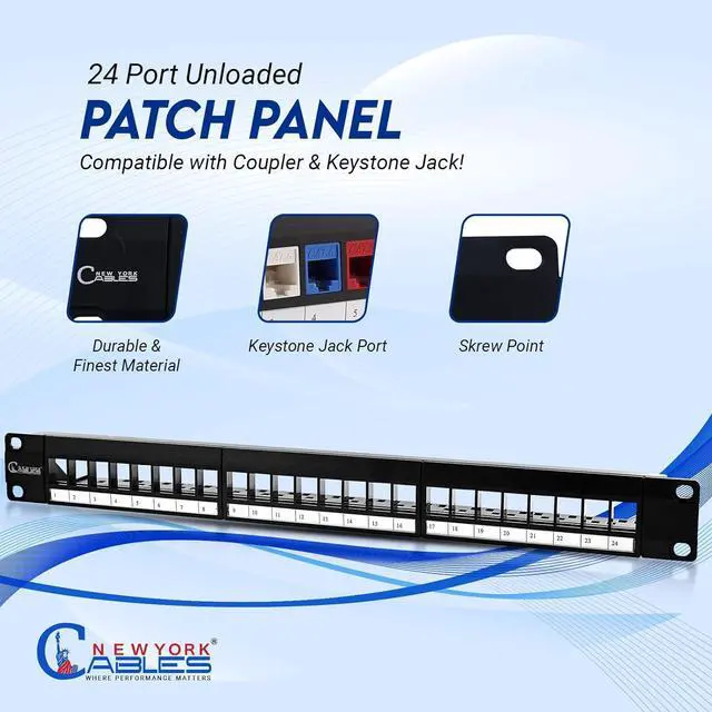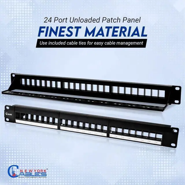 : Prepare your setup for the future. This Cat6 24 port patch panel provides a high-density blank platform that adapts as your network grows. Compatible with Cat 6 patch panel 24 or 24 patch panel Cat6a keystones, it supports AV, data, and fiber lines. Use it as a 110 patch panel or for a fully modular system.