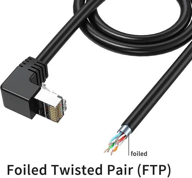 Shielded cat6a 90 degree ethernet cable, FTP ( Foiled Twisted Pair) shielding can prevent electromagnetic interference (EMI) and reduce crosstalk noise over the Cat 6a Ethernet cable.