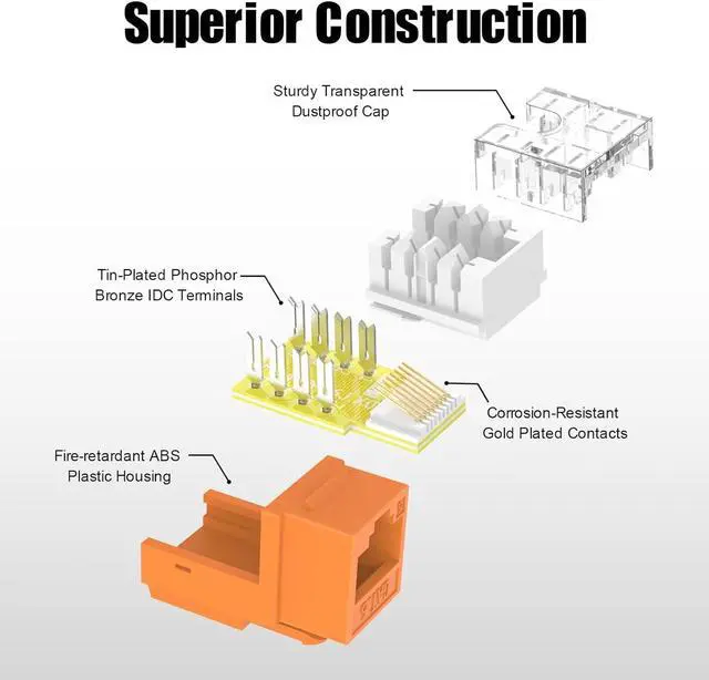 Packaging & After-Service: 10 x Cat6 keystone jacks (Orange). With UL Listed (E521847), just use it without concern. Items come with 18 months warranty and lifetime support.