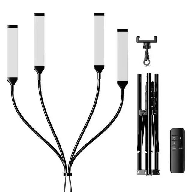 Precise & Flexible: Adjustable brightness, color temperature and arms. Use the wire/remote control to adjust the lighting from warm to cool tones(2700K-6000K). Rotate and bend four independent arms flexibly to achieve customized illumination.