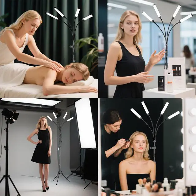 Four Arms LED Light for Photography, Esthetician Light for Lash Extensions with Phone Holder/Floor Lamp/Lash Light for Makeup/Tattoo/Selfie/Video Recording/Photography/TikTok/YouTube/Live Stream