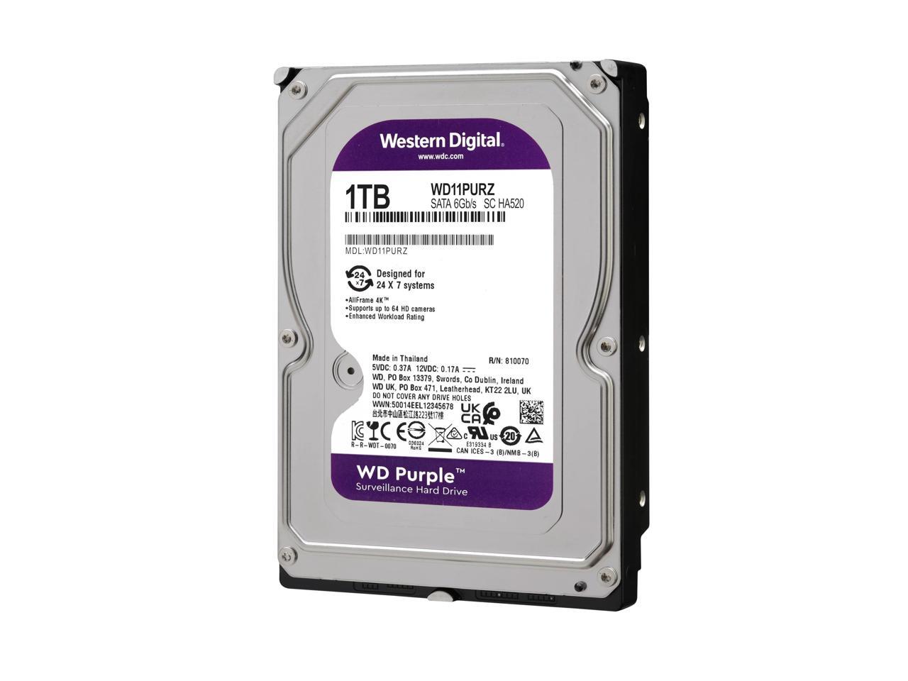 WD Purple WD10PURZ-20PK 1 TB Hard Drive - 3.5" Internal - SATA (SATA/600) - Network Video Recorder Device Supported - 5400rpm - 3 Year Warranty - 20 Pack