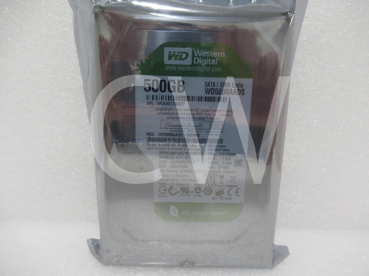 Western Digital CAVIAR GREEN WD5000AADS 500GB 5400RPM 3Gbps 32MB 3.5IN SATA Hard Drive
