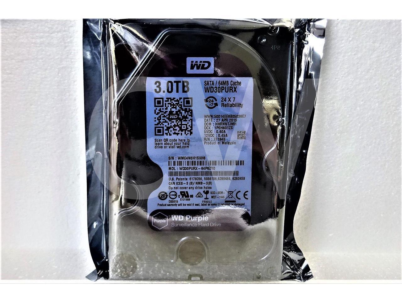 Western Digital PURPLE WD30PURX 3TB 5400RPM 6Gbps 64MB 3.5IN SATA SURVEILLANCE Hard Drive - (ZERO HOURS HDD)