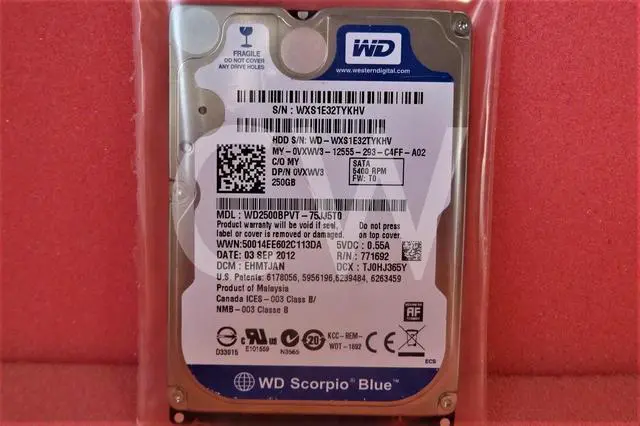 Western Digital Scorpio BLUE WD2500BPVT 0VXWV3 VXWV3 250GB 5400RPM 3Gbps 8MB 2.5IN SATA Laptop Hard Drive