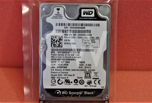 Western Digital WD1600BJKT 0J165G J165G 160GB 7200RPM 3Gbps 16MB 2.5IN SATA Hard Drive