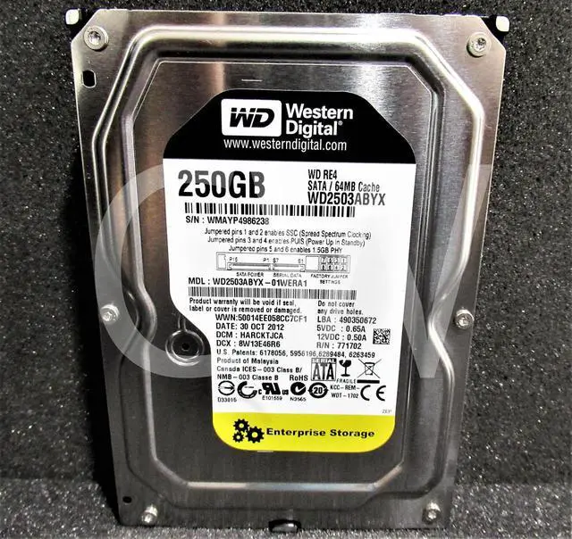 Western Digital RE4 WD2503ABYX 250GB 7200RPM 3Gbps 64MB 3.5IN SATA Hard Drive - (ZERO HOURS HDD).