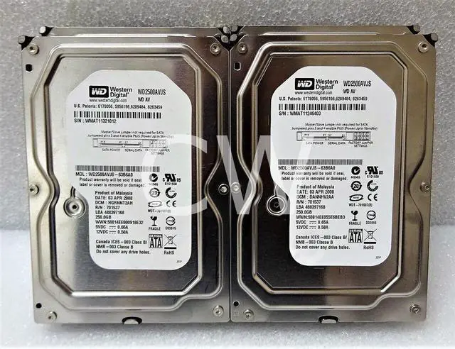 LOT OF 4 Western Digital WD2500AVJS 250GB 720RPM 3Gbps 3.5 in SATA Hard Drive - Drives sold (AS-IS) - Drives are functional but have relocated sectors