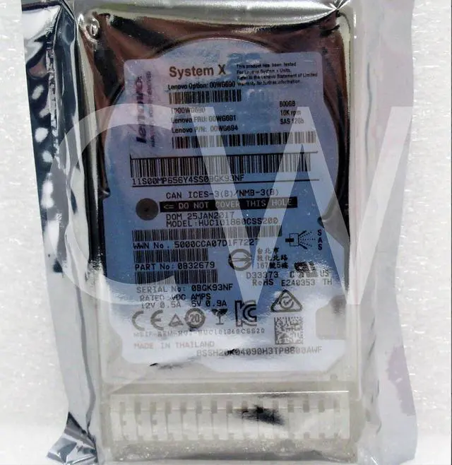 LENOVO SYSTEM X 00WG691 00WG690 00WG694 600GB 10000RPM 12Gbps 2.5IN SAS Hard Drive HUC101860CSS200 - Includes SYSTEM X Caddy/ Tray