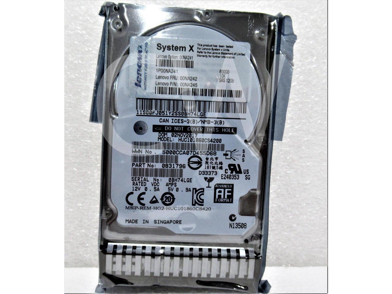 IBM SYSTEM X 00NA242 00NA241 00NA245 600GB 10000RPM 12Gbps 2.5IN SAS Hard Drive HUC101860CS4200- Includes SYSTEM X Caddy/ Tray - (ZERO HOURS HDD)