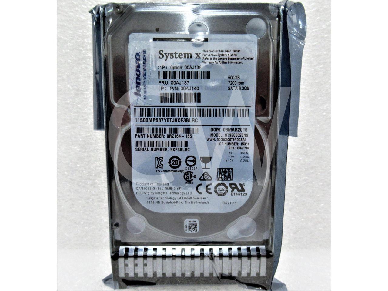 IBM SYSTEM X 00AJ136 00AJ137 00AJ140 500GB 7200RPM 6Gbps NL 2.5IN SATA Hard Drive ST9500620NS - Includes SYSTEM X Caddy/ Tray