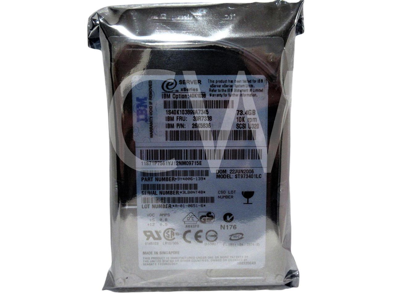 IBM X SERIES 39R7338 26K5836 40K1038 73.4GB 10000RPM Ultra-320 2.5IN SCSI HARD DRIVE ST973401LC