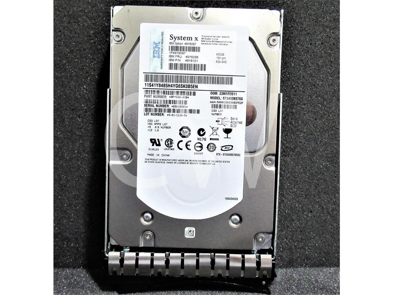 • IBM 49Y6098 49Y6097 49Y6101 450GB 15000RPM 6Gbps 3.5IN SAS Hard Drive ST3450857SS - Includes IBM SYSTEM X Caddy/ Tray