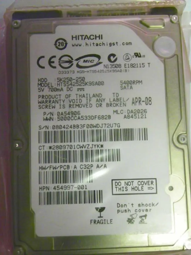 Hitachi Hts542525K9Sa00 P/N:0A54906 Mlc:Da2026 Fw: A C32P A/A 250Gb 2.5" Sata Hd
