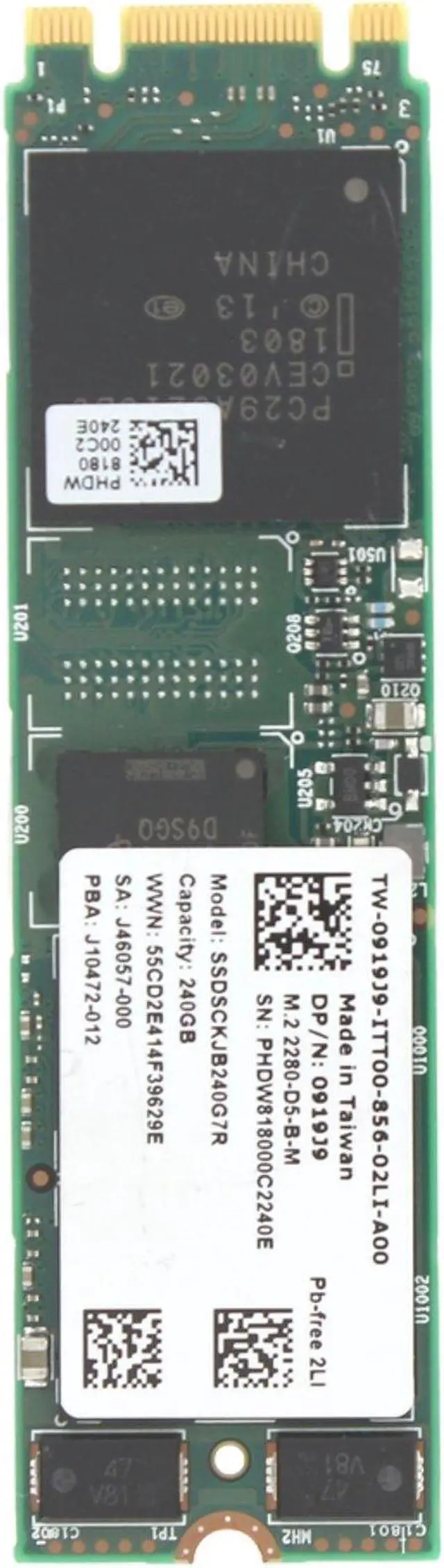 Up for sale is a Dell 240GB M. 2 MLC SATA RI 6Gbs SSD (919J9). All components are tested and firmware is updated. Dell 240GB M. 2 MLC SATA RI 6Gbs SSD (919J9)