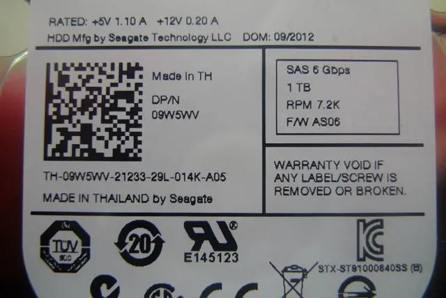 GENUINE Dell Constellation 1TB SAS 6Gps 7.2K RPM Hard Drive ST91000640SS 9W5WV
