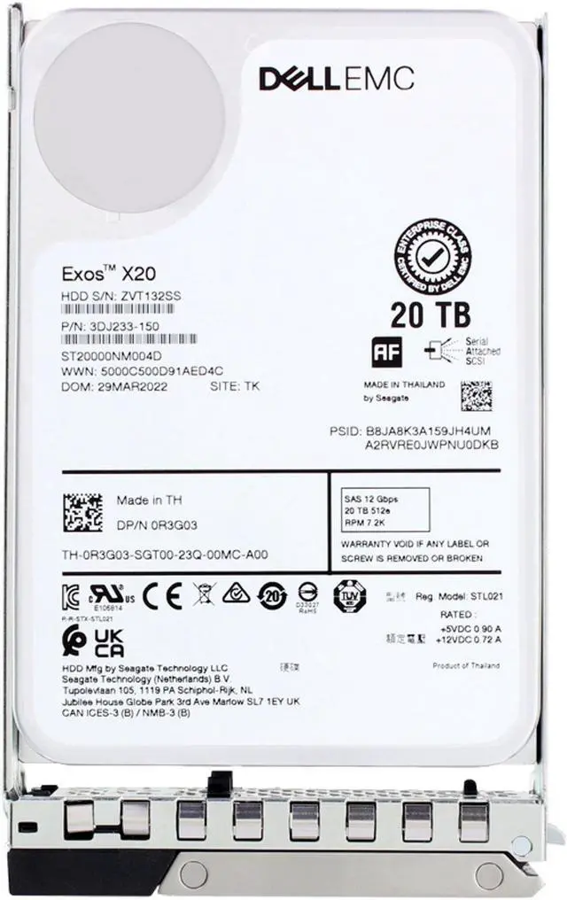Up for sale is a Dell 20TB 7.2K 12Gbps NL SAS 3.5 HDD (ME5) (ST20000NM004D-OSTK). All components are tested and firmware is updated. Dell 20TB 7.2K 12Gbps NL SAS 3.5 HDD (ME5) (ST20000NM004D-OSTK)