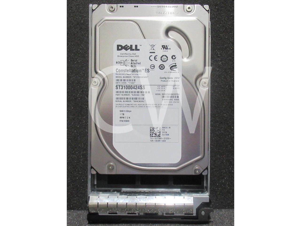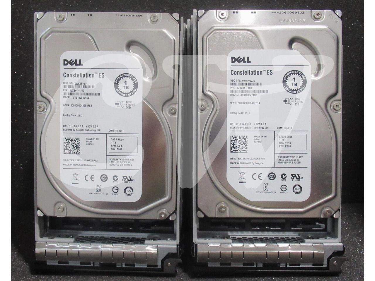 LOT OF 10 Dell CONSTELLATION ES U738K 0U738K 1TB 7200RPM 6Gbps 16MB NL 3.5IN SAS Hard Drive ST31000424SS - Includes R Series Caddy/ Tray (ZERO HOURS HDD)