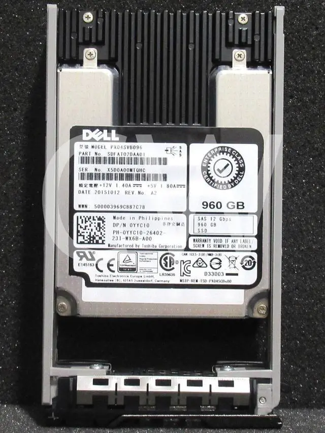 Dell ENTERPRISE 0YYC10 YYC10 960GB MLC 12Gbps Hot Swap 2.5IN SAS Solid State Drive PX04SVB096 (SSD) - Includes R Series Caddy/ Tray (ZERO HOURS HDD)