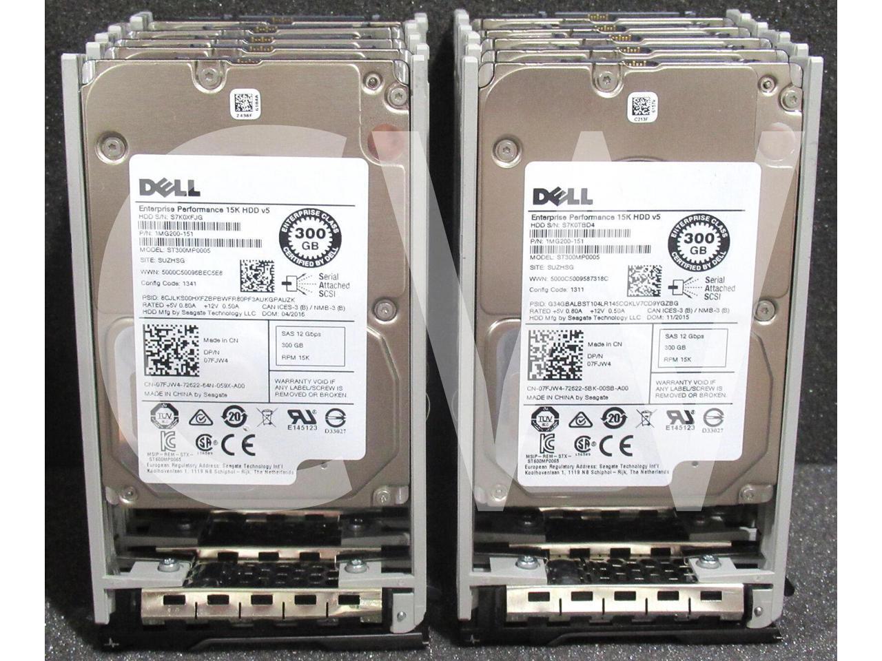 LOT OF 10 Dell ENTERPRISE 7FJW4 07FJW4 300GB 15000RPM 12Gbps 128MB 2.5IN SAS Hard Drive ST300MP0005 - Includes GEN13 POWEREDGE Servers Caddy/ Tray