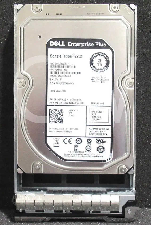 Dell EQUALLOGIC 0KK92 00KK92 3TB 7200RPM 6Gbps 64MB Nearline Hot Swap 3.5IN SAS Hard Drive ST33000650SS - Includes EQUALLOGIC Caddy/ Tray