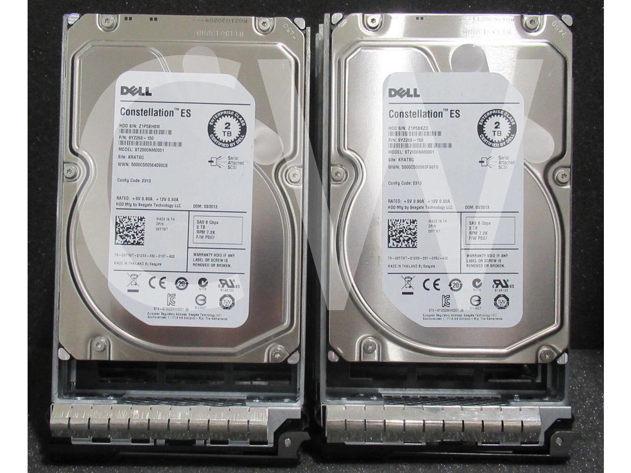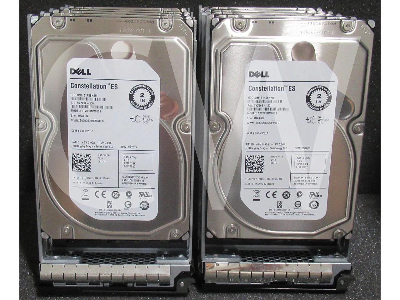 LOT OF 10 Dell CONSTELLATION ES 67TMT 067TMT 2TB 7200RPM 6Gbps 64MB 3.5IN SAS Hard Drive ST2000NM0001 - Includes R Series Caddy/ Tray