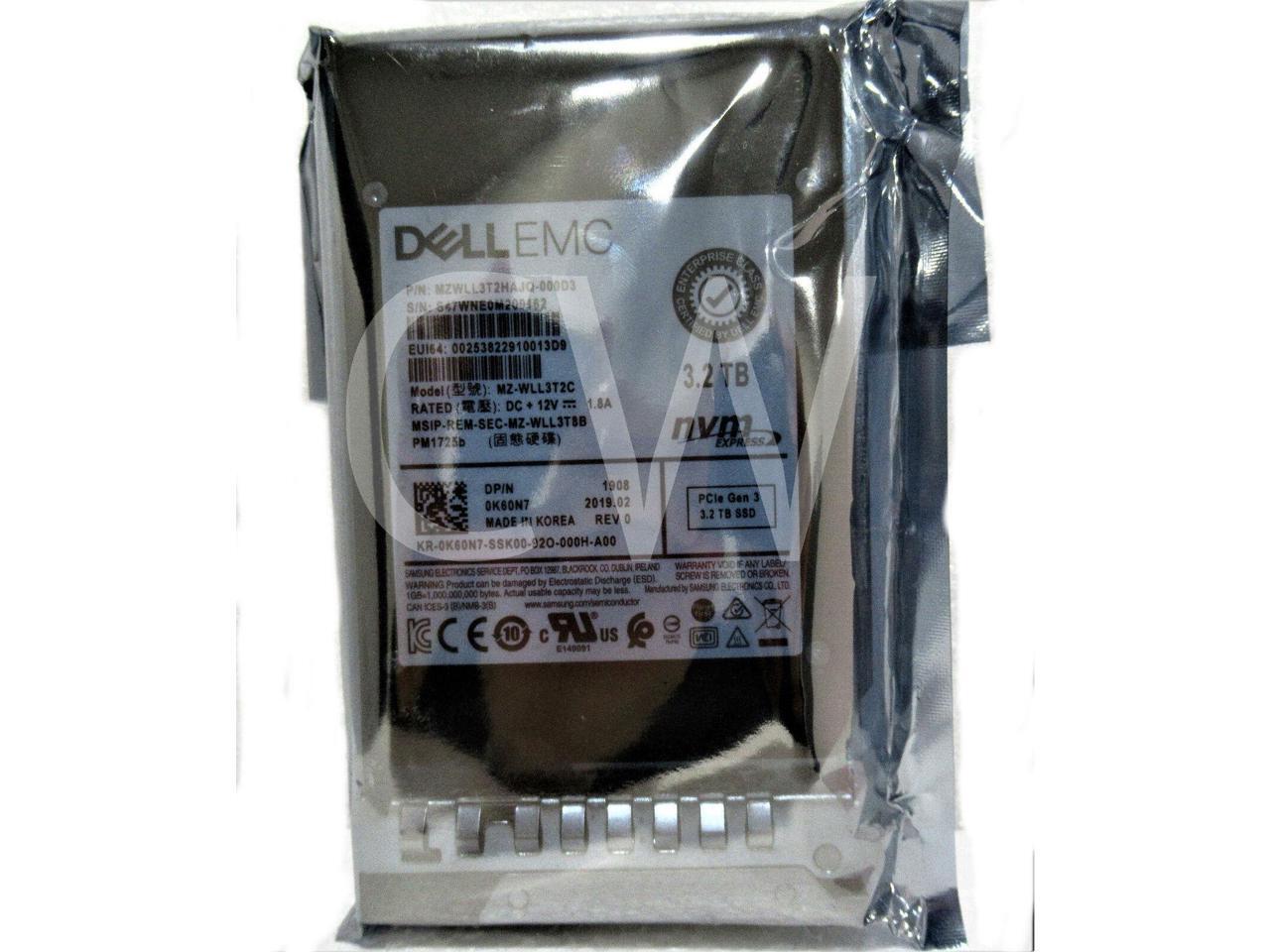 K60N7 Dell MZ-WLL3T2C 3.2TB TLC PCI Express 3.0x4 NVMe U.2 2.5"Solid State Drive