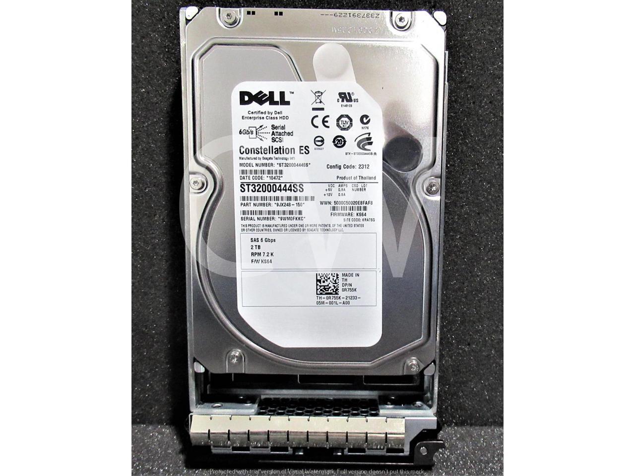 Dell 0R755K R755K CONSTELLATION ES 9JX248-150 2TB 7200RPM 6Gbps 16MB 3.5IN SAS Hard Drive ST32000444SS - Includes R Series Caddy/ Tray