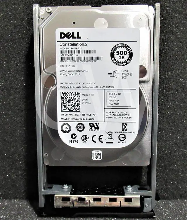 LOT OF 10 Dell CONSTELLATION. 2 55RMX 055RMX 500GB 7200RPM 6Gbps 64MB 2.5IN SAS Hard Drive ST9500620SS - Includes R Series Caddy/ Tray (ZERO HOURS HDD)