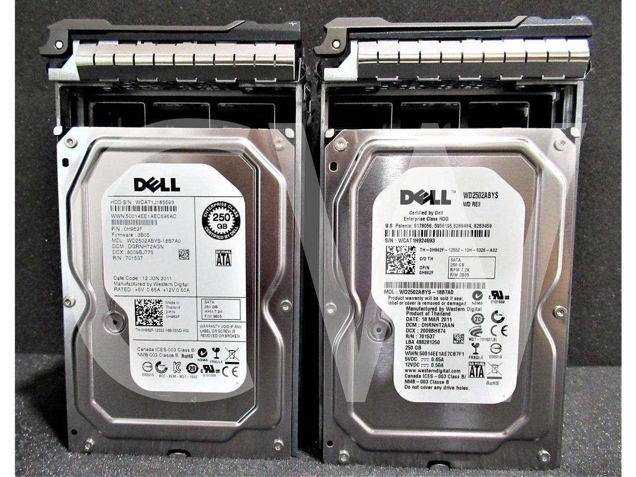 - LOT OF 10 Dell ENTERPRISE H962F 0H962F 250GB 7200RPM 3Gbps 16MB 3.5IN SATA Hard Drive WD2502ABYS-18B7A0 - Includes R Series Caddy/ Tray (ZERO HOURS HDD)